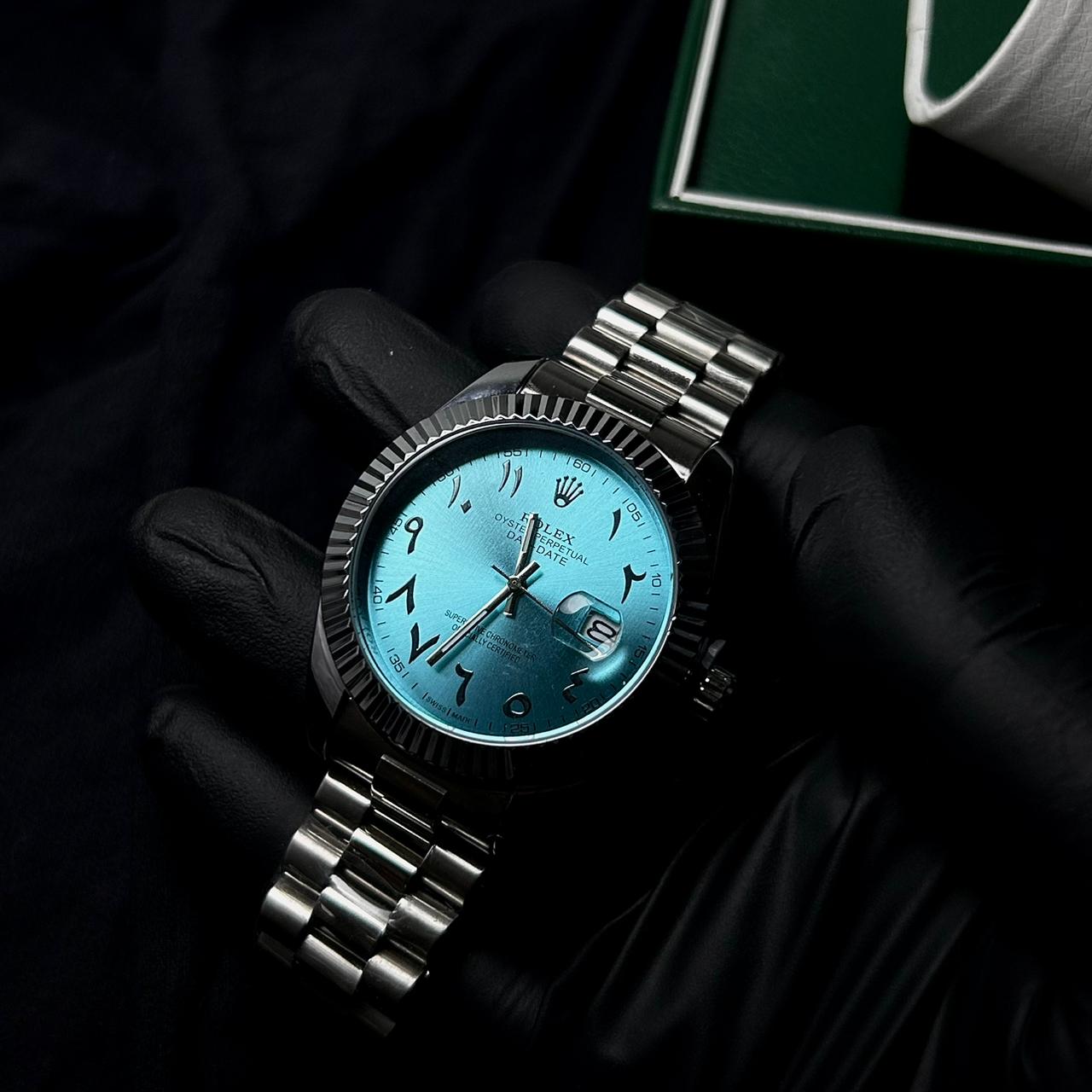 Rolex Day Date Arabic Style For Him - Silver Turquoise