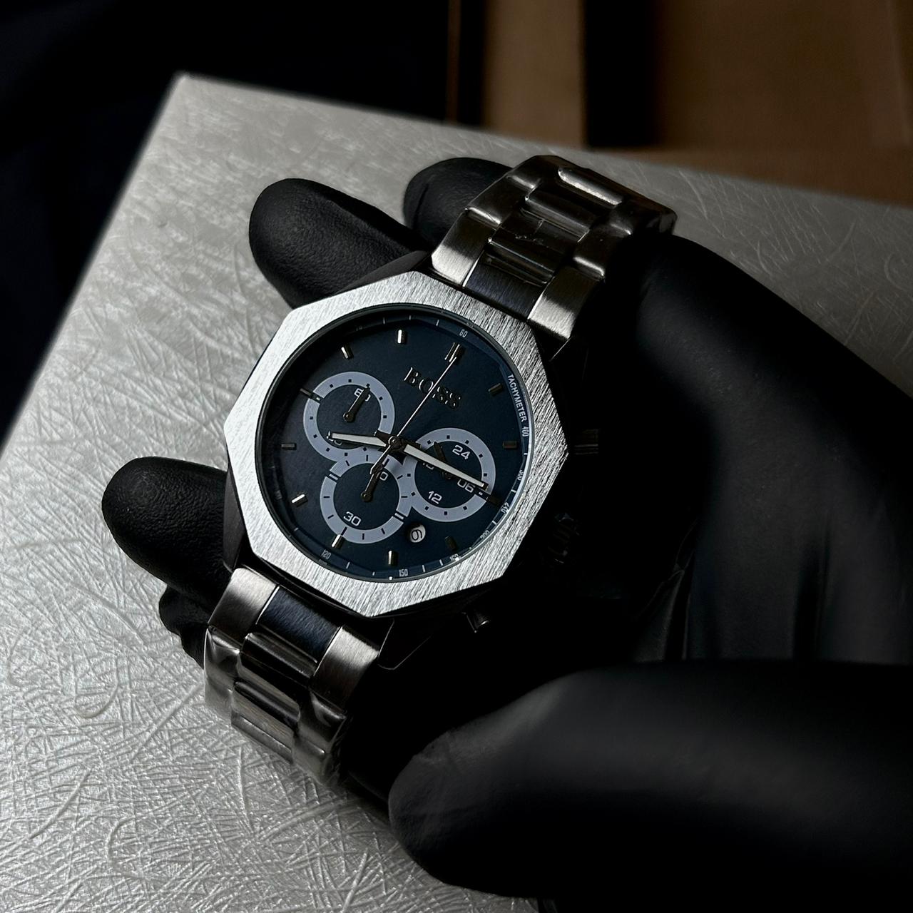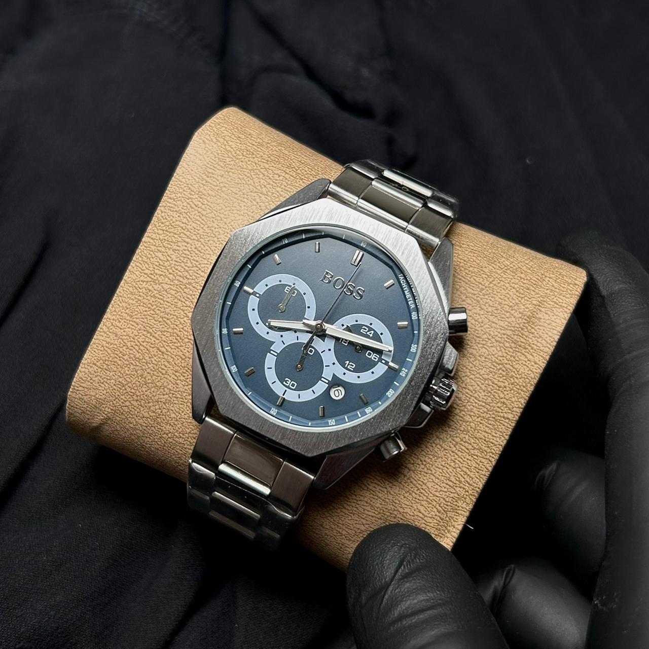 A powerful steel build with a deep navy dial for a more elevated, premium feel. Sporty chronograph details and a strong bracelet finish make it a perfect daily statement.