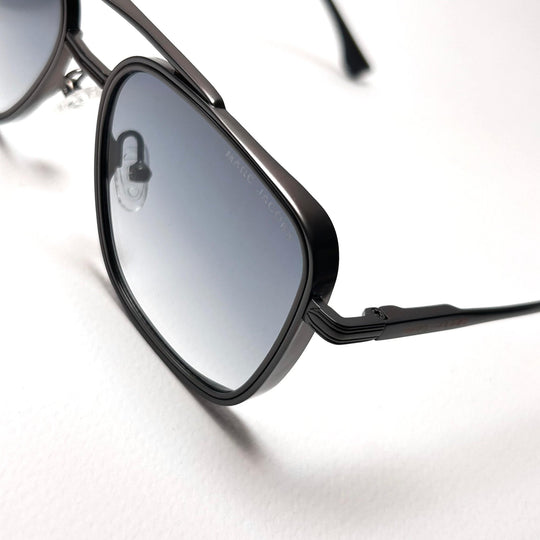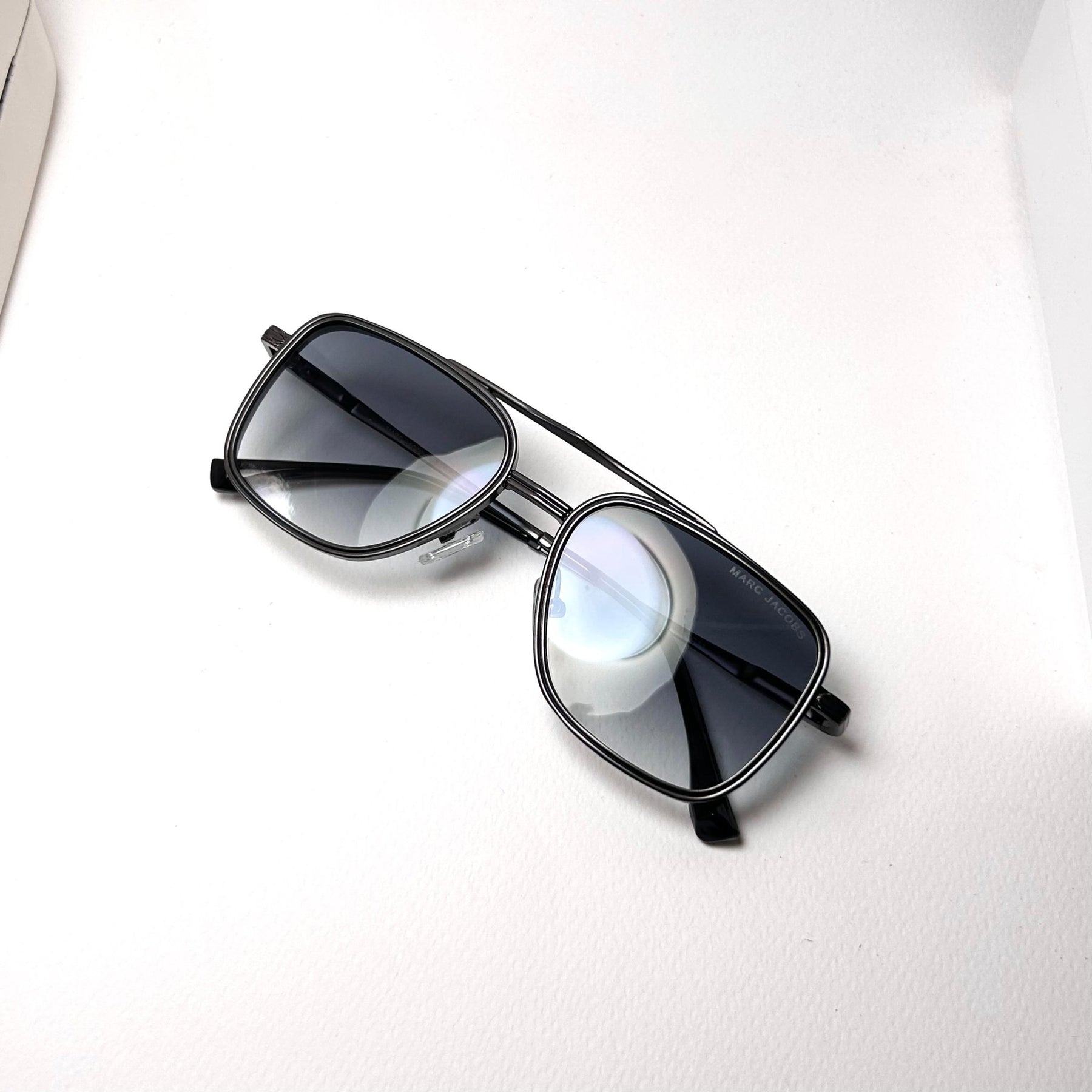 Temple Design: Slim black arms with engraved Marc Jacobs logo