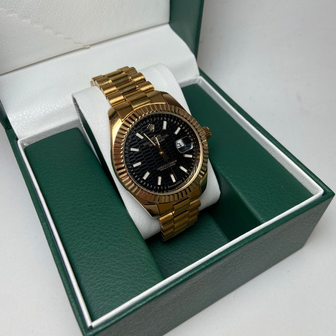 Rolex Date Just For Him - Gold - Tone with Black Textured Dial - Giiz store